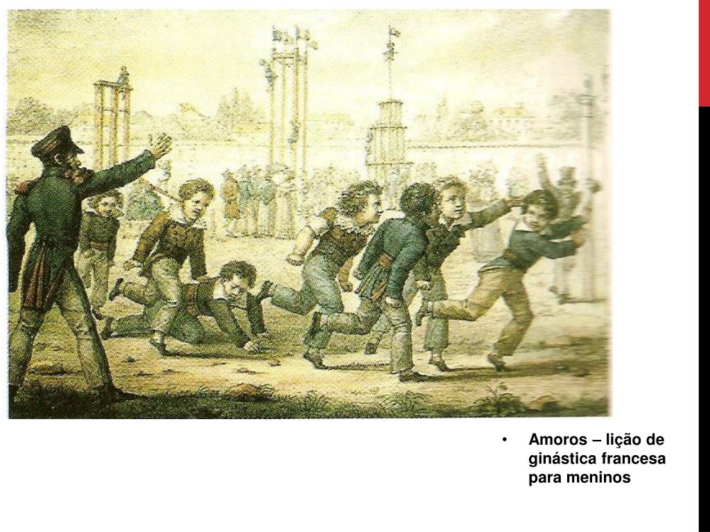 No Brasil – método francês – especificidade de ginástica para escola – médicos e pedagogos. Esta ginástica compreendia: “exercícios individuais, em duplas, quartetos, o ato de levantar e transportar pessoas e objetos; esgrima; danças; jogos e posteriormente já no final do século XIX, os jogos esportivos; a música; o canto e os exercícios militares.”