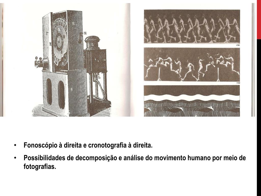 Fonoscópio à direita e cronotografia à direita. • Possibilidades de decomposição e análise do movimento humano por meio de fotografias.