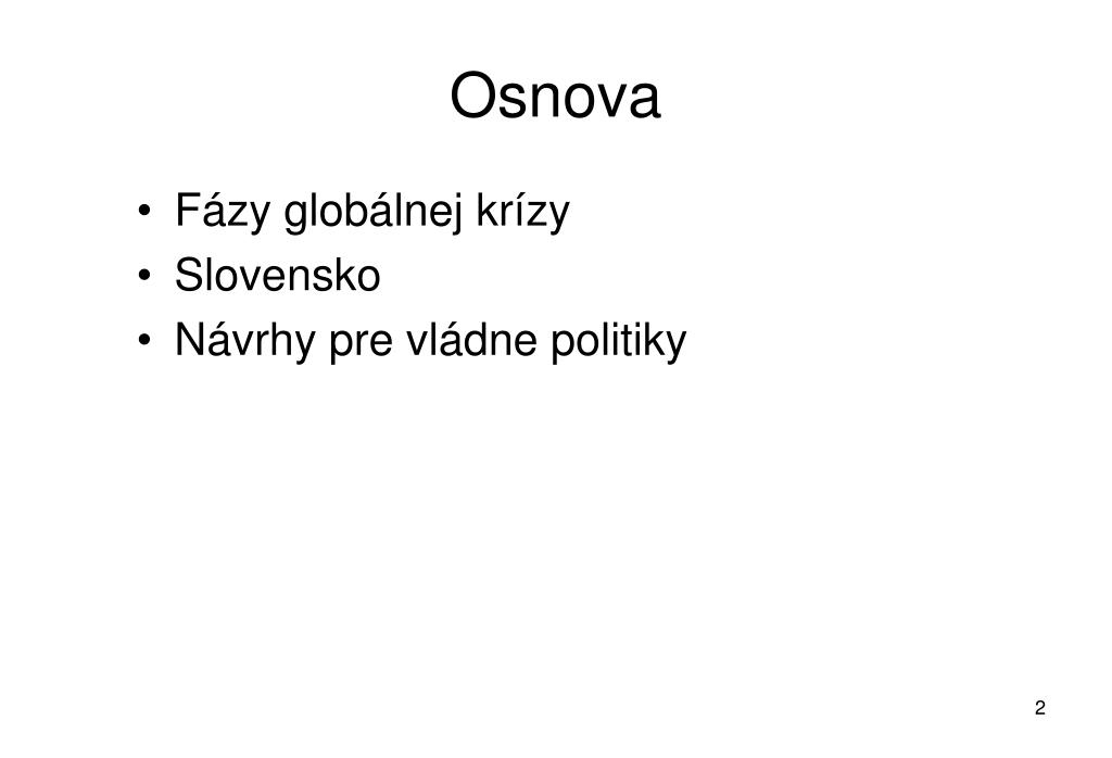 Osnova • Fázy globálnej krízy • Slovensko • Návrhy pre vládne politiky