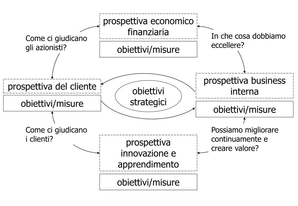prospettiva economico finanziaria obiettivi/misure prospettiva business interna prospettiva del cliente obiettivi/misure obiettivi/misure prospettiva innovazione e apprendimento obiettivi/misure In che cosa dobbiamo eccellere? Come ci giudicano gli azionisti? obiettivi strategici Come ci giudicano i clienti? Possiamo migliorare continuamente e creare valore?