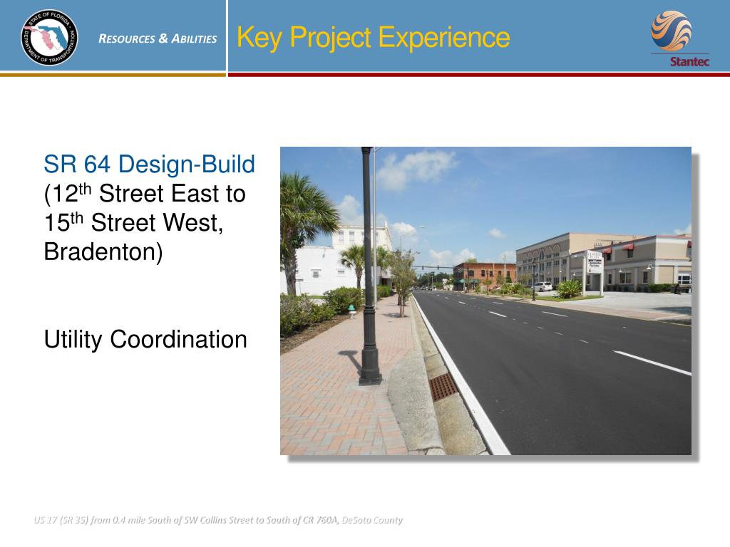 Key Project Experience Resources & Abilities • SR 64 Design-Build • (12th Street East to 15th Street West, Bradenton) • Utility Coordination