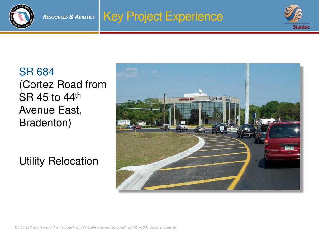 Key Project Experience Resources & Abilities SR 684 (Cortez Road from SR 45 to 44th Avenue East, Bradenton) Utility Relocation