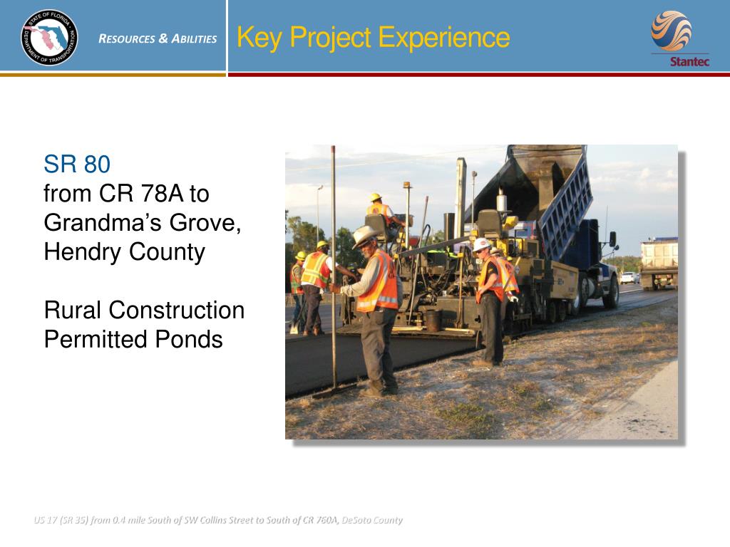 Key Project Experience Resources & Abilities SR 80 from CR 78A to Grandma’s Grove, Hendry County Rural Construction Permitted Ponds