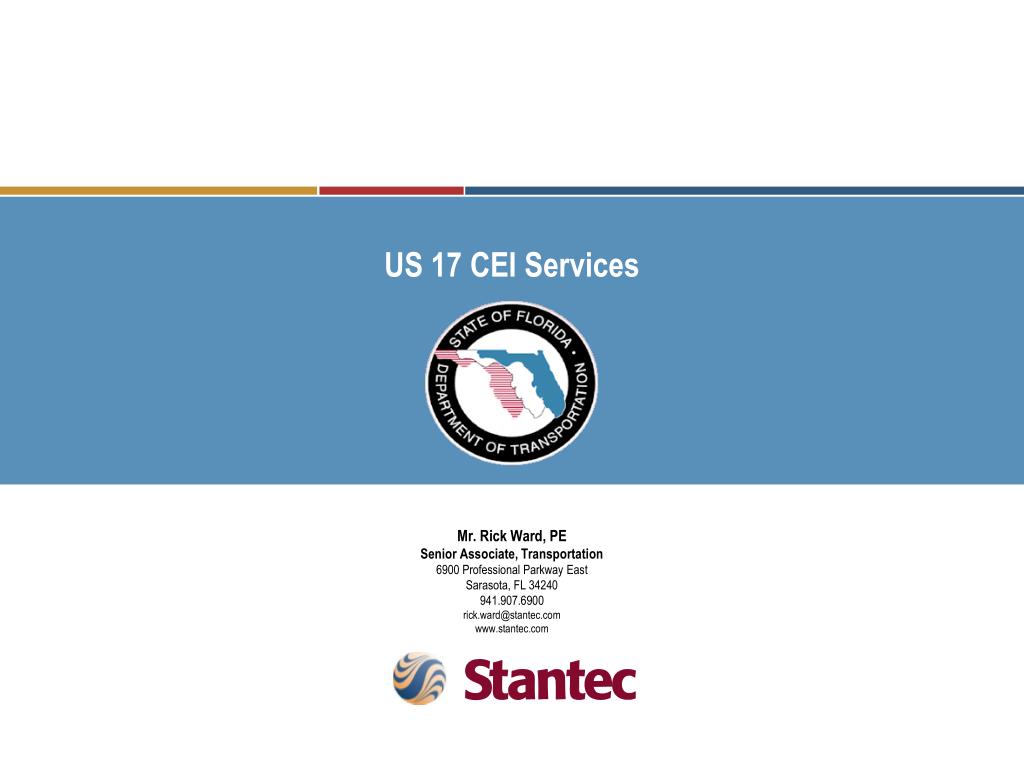 US 17 CEI Services Mr. Rick Ward, PE Senior Associate, Transportation 6900 Professional Parkway East Sarasota, FL 34240 941.907.6900 rick.ward@stantec.com www.stantec.com
