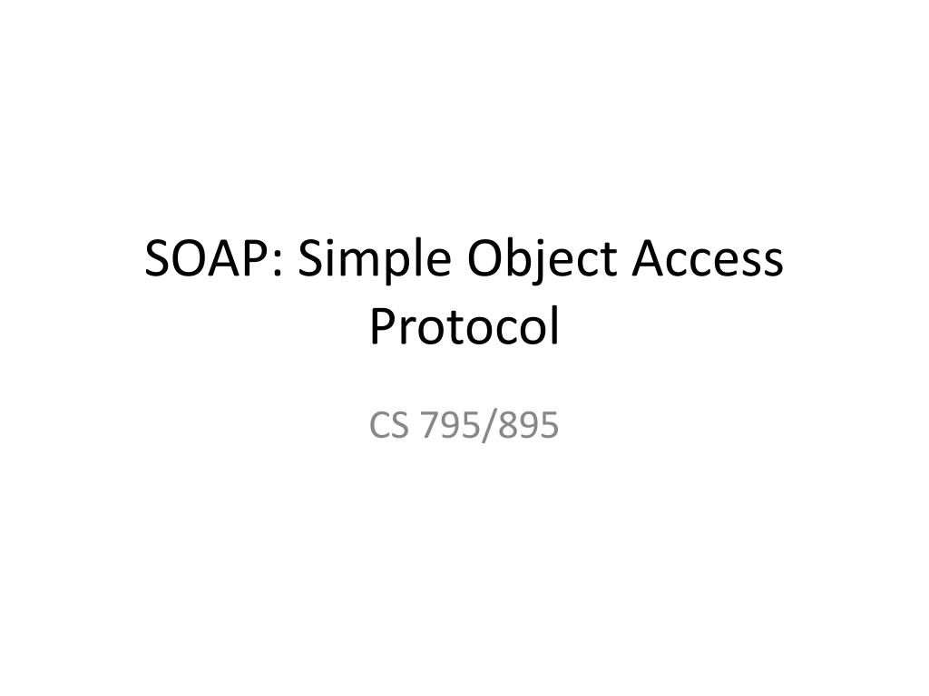SOAP: Simple Object Access Protocol. CS 795/895. Reference links. Video: https://www.youtube.com/watch?v=e2g8usyl2-M. T he foundation of all SOAP-based web services, the SOAP specification details the format of the actual messages.