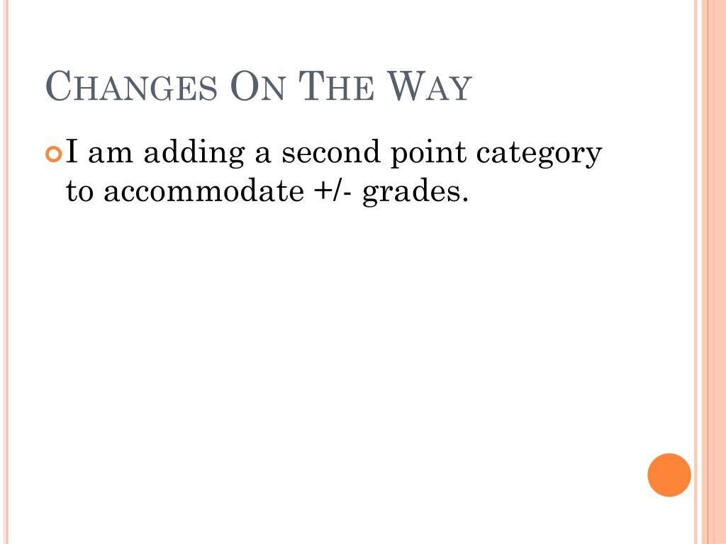 Changes On The Way • I am adding a second point category to accommodate +/- grades.