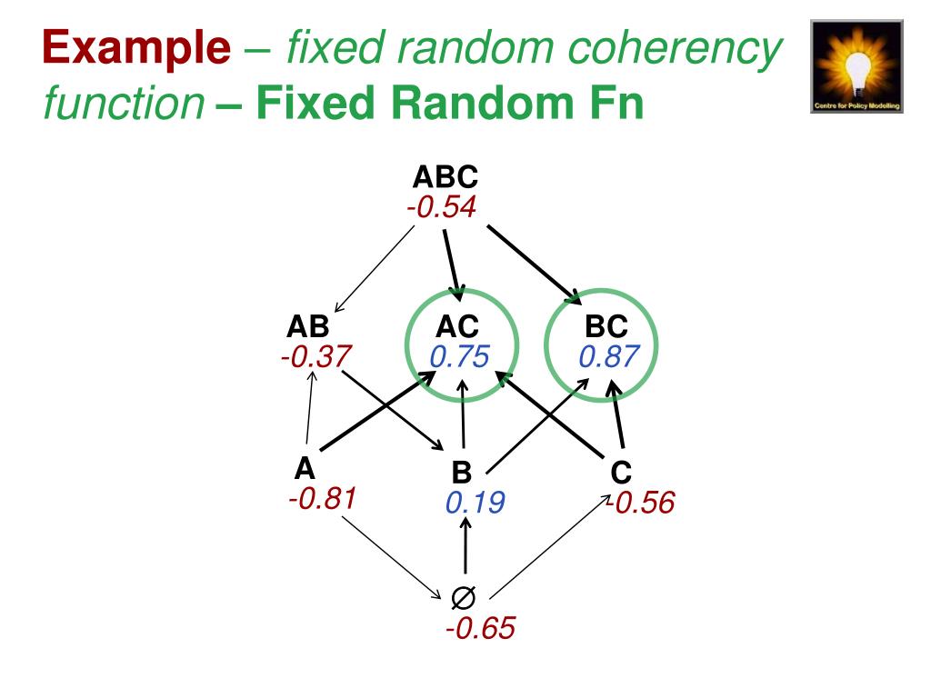 Example – fixed random coherency function – Fixed Random Fn -0.54 ABC -0.37 AB AC 0.75 0.87 BC -0.81 A B 0.19 -0.56 C -0.65