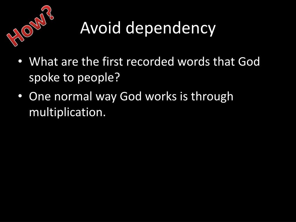 Avoid dependency How? • What are the first recorded words that God spoke to people? • One normal way God works is through multiplication.
