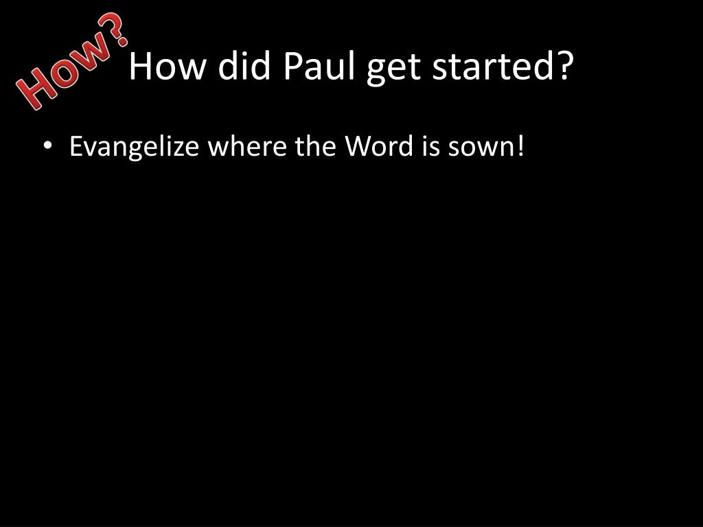 How did Paul get started? How? • Evangelize where the Word is sown!