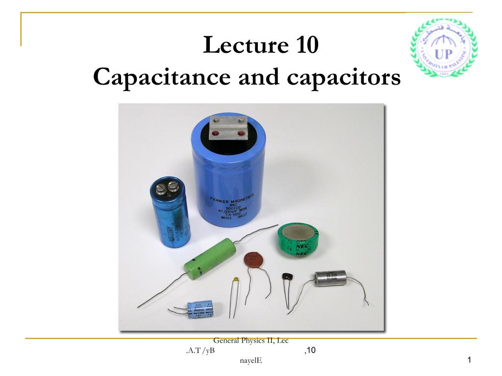 Lecture 10 Capacitance and capacitors General Physics II, Lec 10, By/ T.A. Eleyan