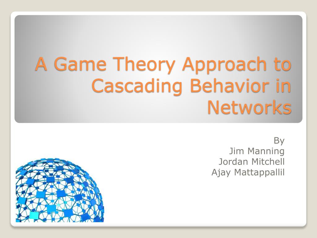 A Game Theory Approach to Cascading Behavior in Networks. By Jim Manning Jordan Mitchell Ajay Mattappallil. Start off with a small group of individuals “Word-of-Mouth” Initial individual tells two of his friends and they tell… Not necessarily selling a product Viral Think Virus.
