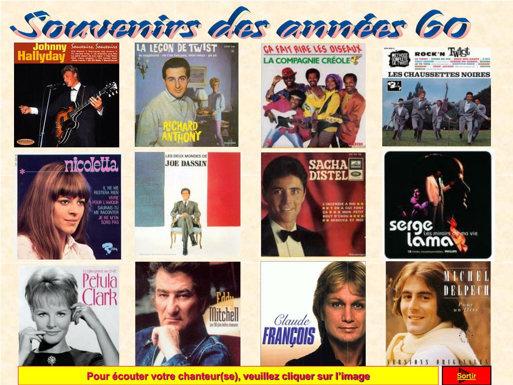 Souvenirs des années 60 Pour écouter votre chanteur(se), veuillez cliquer sur l’image Sortir