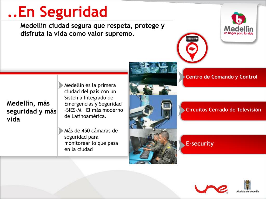 ..En Seguridad Medellín ciudad segura que respeta, protege y disfruta la vida como valor supremo. Centro de Comando y Control Medellín es la primera ciudad del país con un Sistema Integrado de Emergencias y Seguridad –SIES-M. El más moderno de Latinoamérica. Medellín, más seguridad y más vida Circuitos Cerrado de Televisión Más de 450 cámaras de seguridad para monitorear lo que pasa en la ciudad E-security