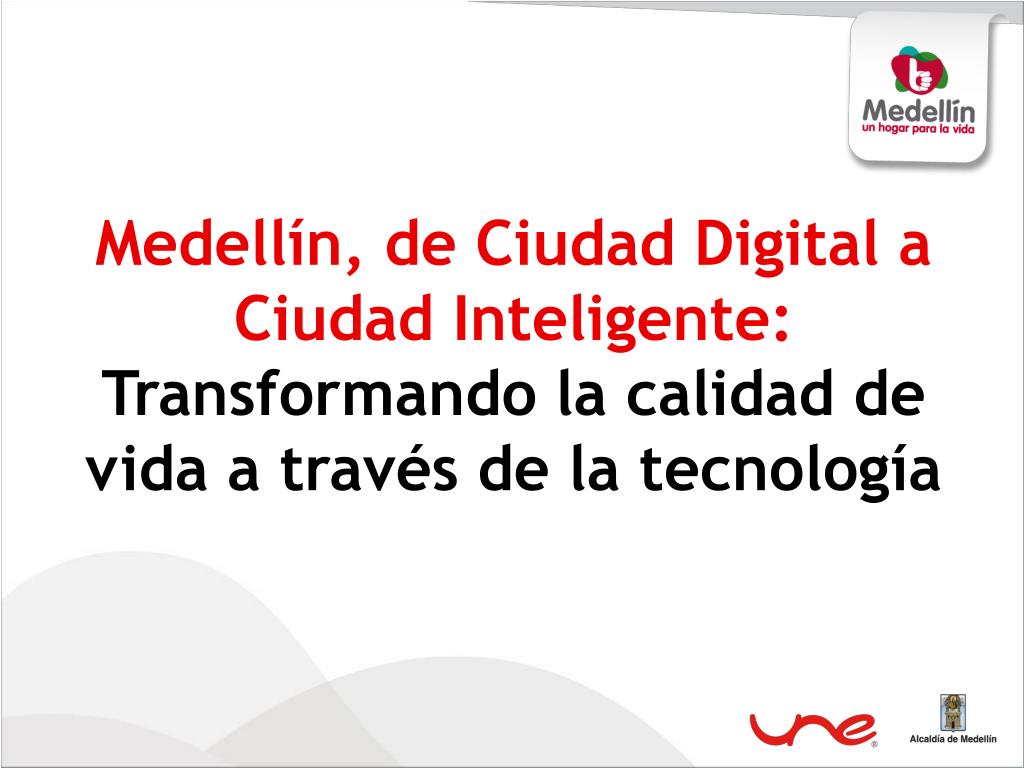 Medellín , de Ciudad Digital a Ciudad Inteligente: Transformando la calidad de vida a través de la tecnología. Medellín. Ciudad digital. de Iberoamérica 2011. Premio entregado por AHCIET. ¿Cómo?. Líneas del Plan de Desarrollo Medellín. Línea 1.