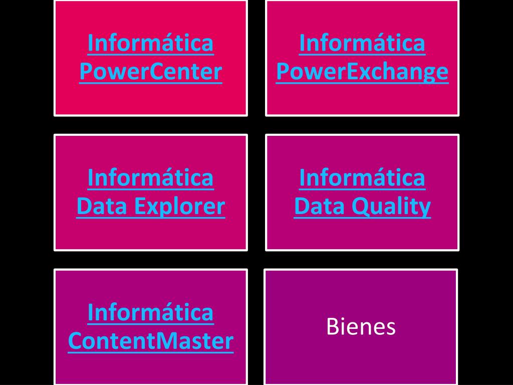 Informática PowerCenter Informática PowerExchange Informática Data Explorer Informática Data Quality Informática ContentMaster Bienes