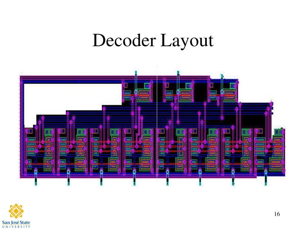 Abstract • We designed an 8-bit X 8-bit SRAM and a 3 X 8 decoder that operated at 200 MHz and uses 5.425 mW of Power and occupied an area of 462 mm x 532 mm.