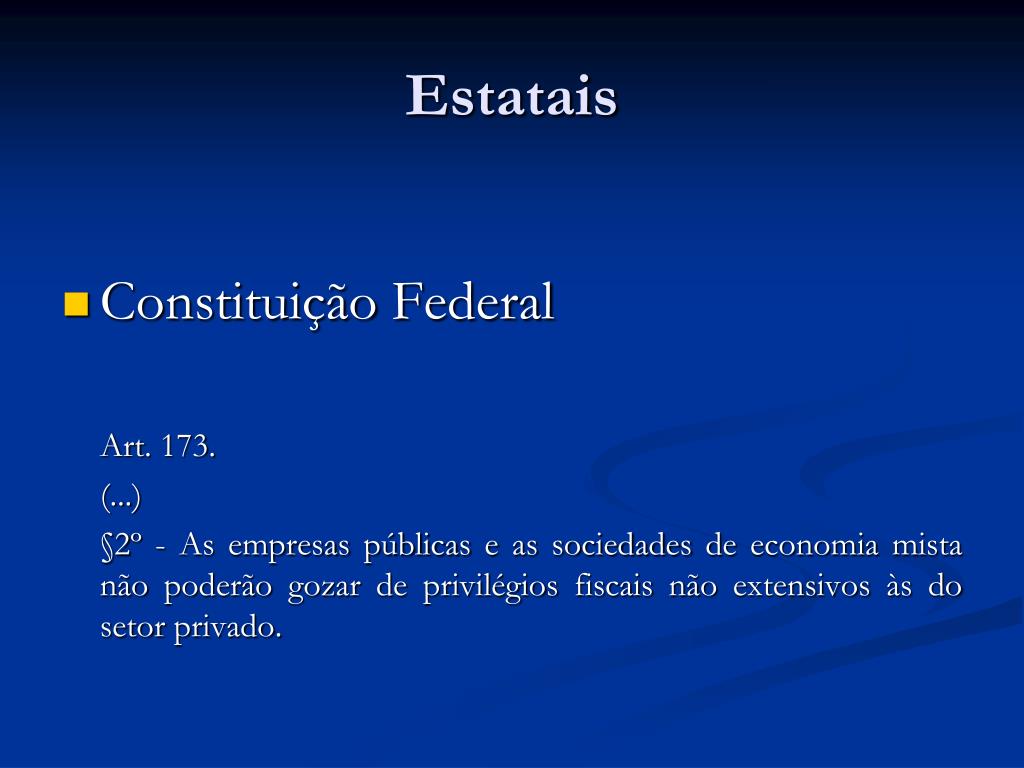 Estatais • Constituição Federal Art. 173. (...) §2º - As empresas públicas e as sociedades de economia mista não poderão gozar de privilégios fiscais não extensivos às do setor privado.