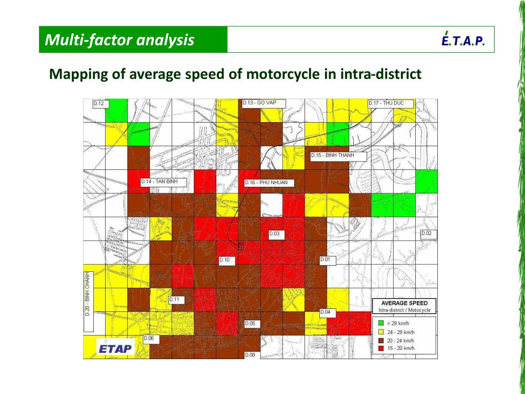 Multi-factor analysis Mapping of average speed of motorcycle in intra-district