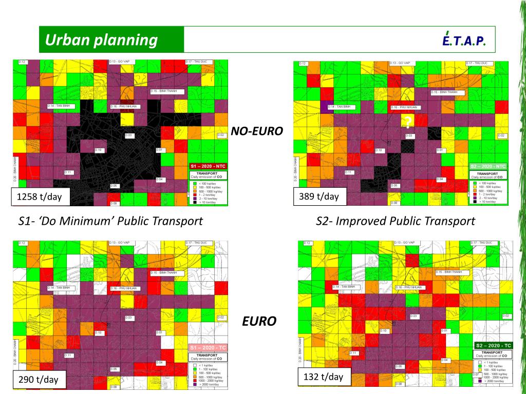 389 t/day 1258 t/day 132 t/day 290 t/day Urban planning ? NO-EURO S1- ‘Do Minimum’ Public Transport S2- Improved Public Transport ? EURO