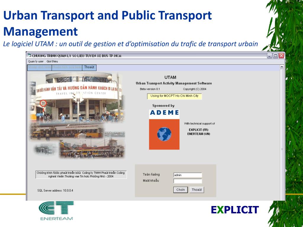 Urban Transport and Public Transport ManagementLe logiciel UTAM : un outil de gestion et d’optimisation du trafic de transport urbain