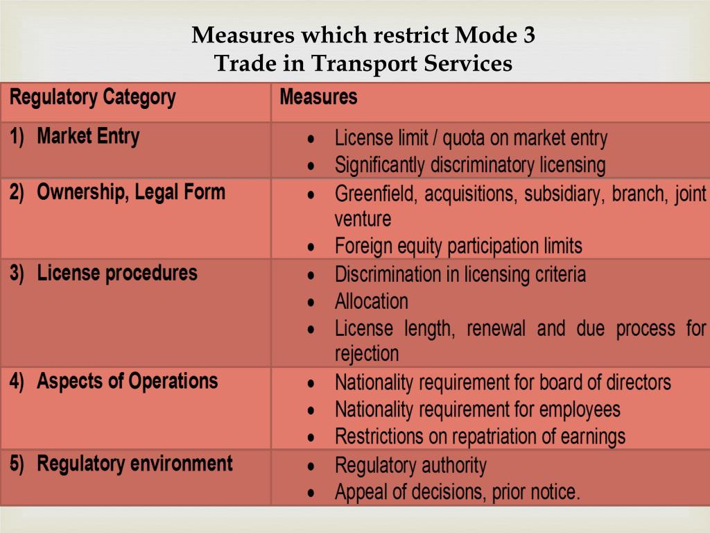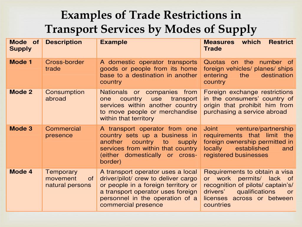 Examples of Trade Restrictions in Transport Services by Modes of Supply