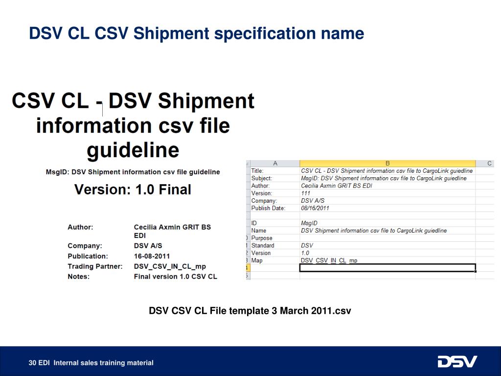DSV CL CSV Shipment information EDI setup28th of September 2011, Brøndby By Cecilia Axmin, Group IT 27/09 2011