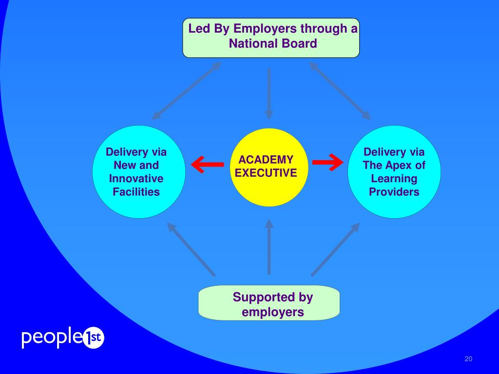 Led By Employers through a National Board Delivery via New and Innovative Facilities Delivery via The Apex of Learning Providers ACADEMY EXECUTIVE Supported by employers