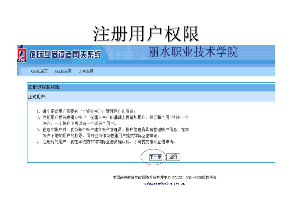 用户与账户的关系 每个正式用户需要有一个资金帐户,管理用户的资金。 注册用户要首先建立帐户,在建立帐户的基础上再追加用户,保证每个用户都有一个帐户,一个帐户下可以有一个或多个用户。 在建立帐户时,要为每个帐户建立帐户管理员。帐户管理员具有管理帐户信息,在本 帐户下增加用户的权限,同时也可作为普通用户提交馆际互借申请。 注册后的用户,要在本校馆际互借员确认后,才可提交馆际互借申请。