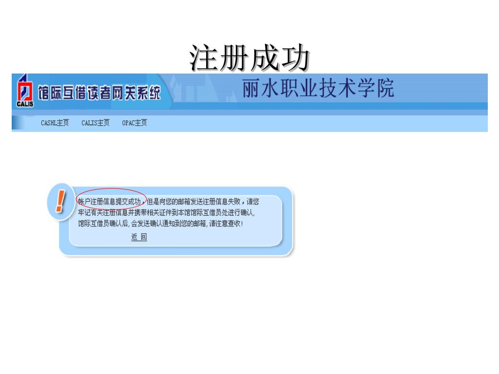 读者网关界面 点击下拉菜 单,选择所 属成员馆 已注册账户 或用户,输 入登录名和 密码 未注册账户 点击注册 注:统一认证实现 以后,不需要读者 再注册