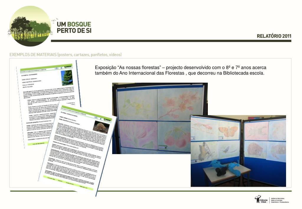 Exposição “As nossasflorestas” – projectodesenvolvidocom o 8º e 7º anosacercatambém do AnoInternacional das Florestas, quedecorreunaBibliotecadaescola.