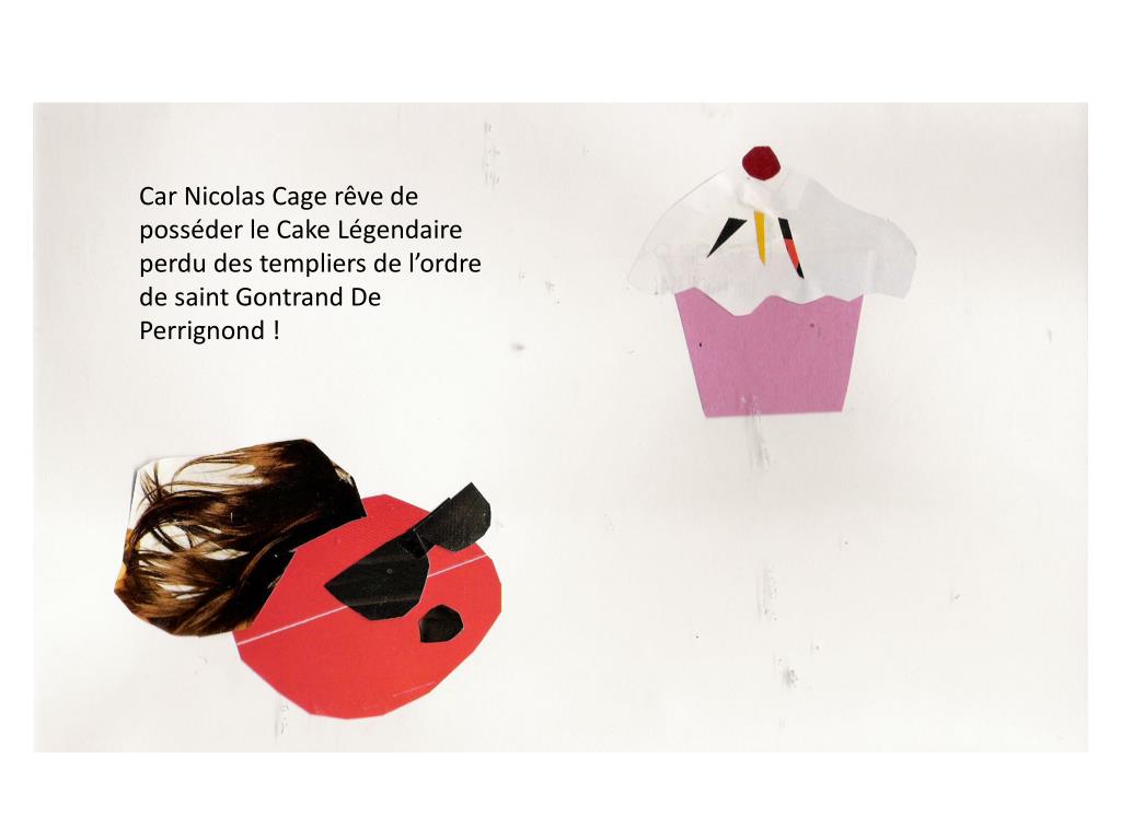 Voici Nicolas Cage !. Nicolas Cage est une Star !. Mais Nicolas Cage est très très triste !. Car Nicolas Cage rêve de posséder le Cake Légendaire perdu des templiers de l’ordre de saint Gontrand De Perrignond !.