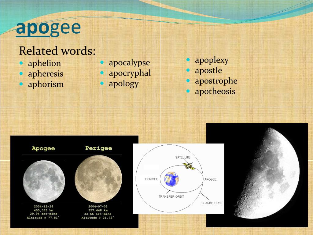 apogee What might apo- mean? What about gee or geo?