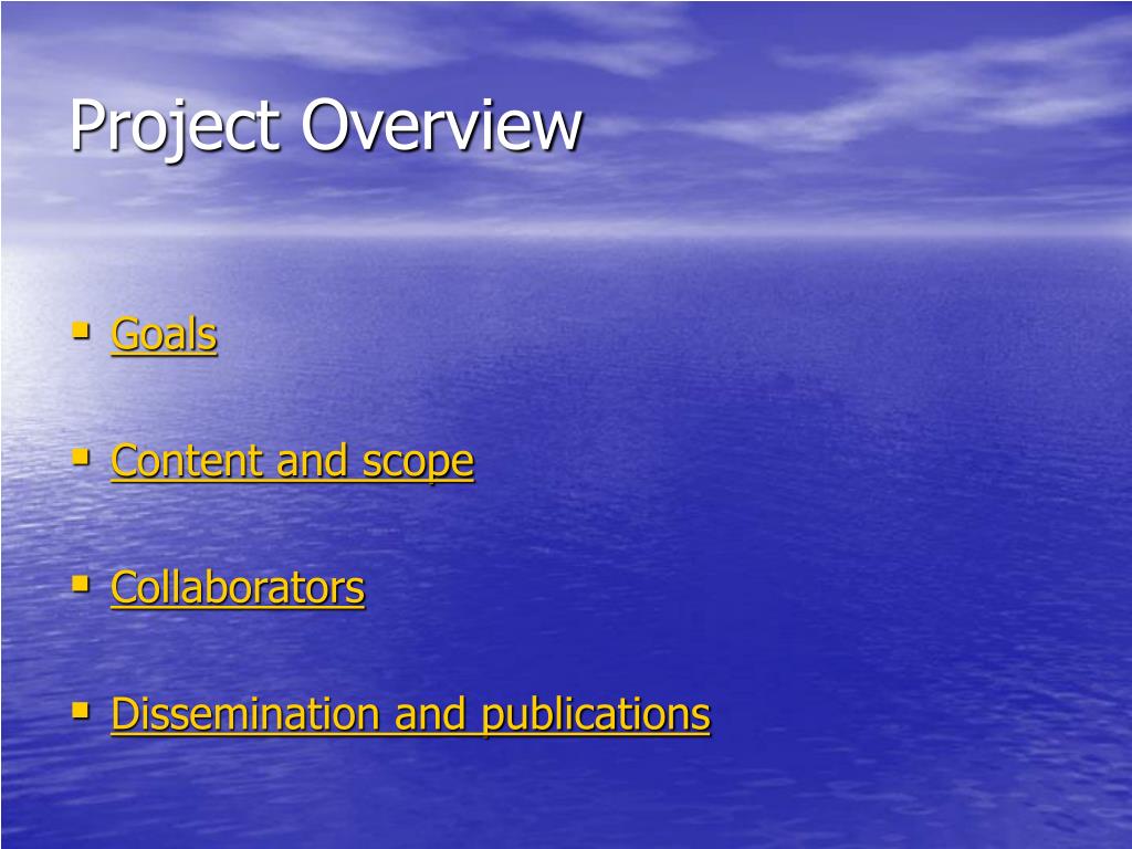 Project Overview • Goals • Content and scope • Collaborators • Dissemination and publications