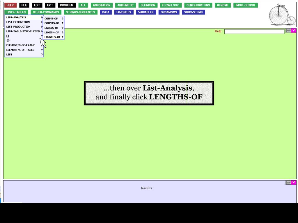 The LENGTHS-OF function naturally asks for the entity (e.g. genome) or entities we want to know the length of. That would be all phage. Click the entity box,…