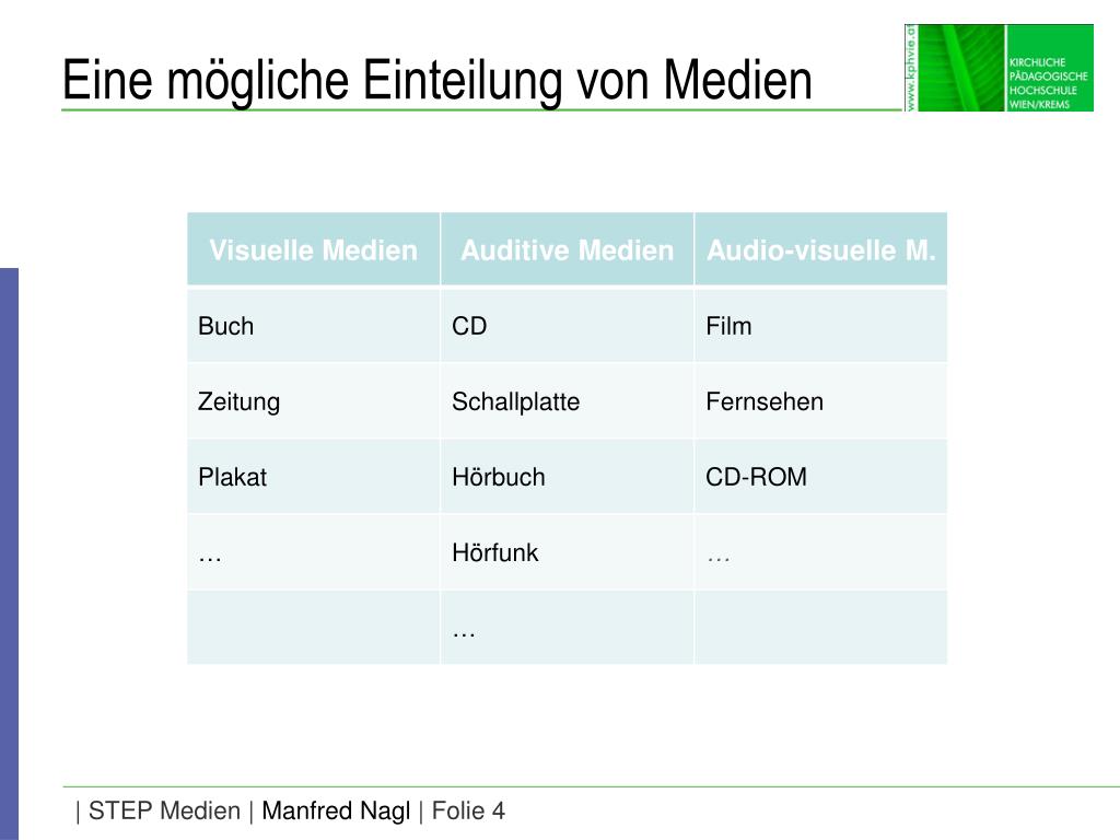 STEP MedienHerzlich willkommen! Dr. Manfred Nagl, MSc MAS KIRCHLICHE PÄDAGOGISCHE HOCHSCHULE WIEN / KREMS www.kphvie.ac.at