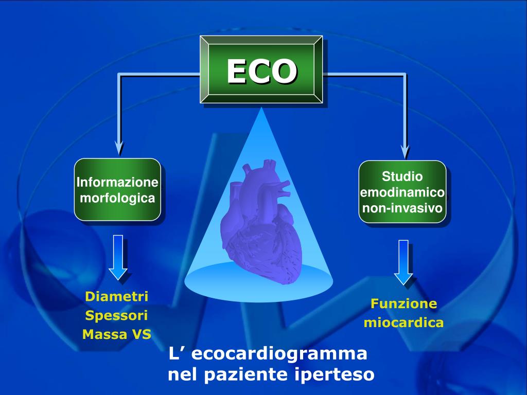 ECO Informazione morfologica Studio emodinamico non-invasivo Diametri Spessori Massa VS Funzione miocardica L’ ecocardiogramma nel paziente iperteso