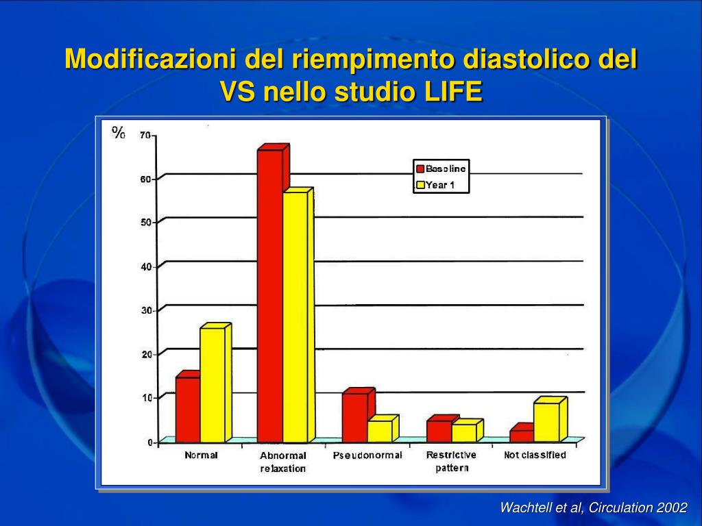 Modificazioni del riempimento diastolico del VS nello studio LIFE Wachtell et al, Circulation 2002