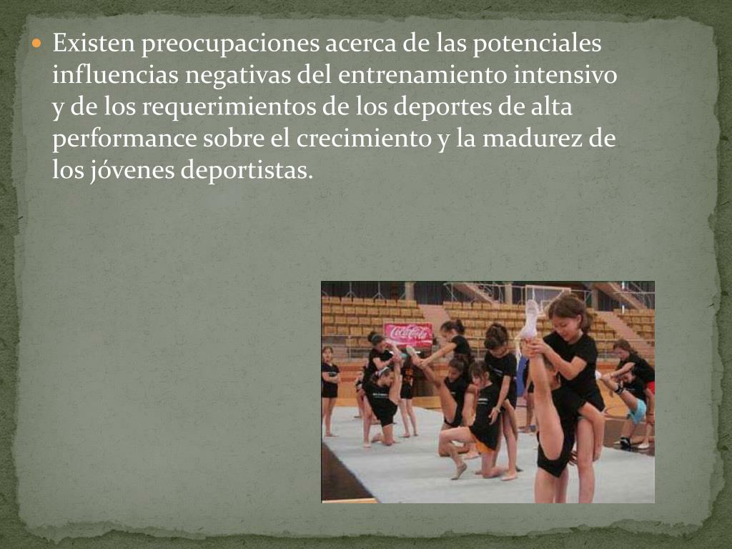 Existen preocupaciones acerca de las potenciales influencias negativas del entrenamiento intensivo y de los requerimientos de los deportes de alta performance sobre el crecimiento y la madurez de los jóvenes deportistas.