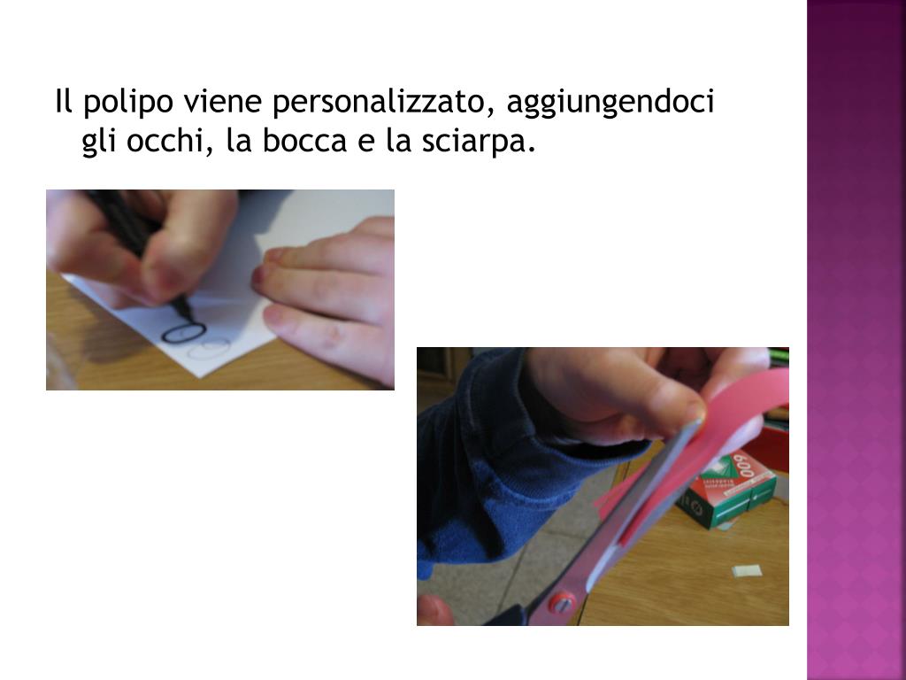 Il polipo viene personalizzato, aggiungendoci gli occhi, la bocca e la sciarpa.