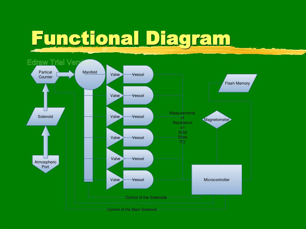 Mission Overview • Mission Requirements • Sense apogee and evacuate the six vessels • Seal all six vessels • Collect an air sample every 20km during descent in the 130km to 30km range. Only 6 of the 7 vessels will be used. The 7th is a baseline sealed at apogee • Record resistance of all sensors and magnetometer data to flash memory via a microcontroller • Atmospheric density changes exponentially, so the sampling frequency of collection may be changed • Pre-flight testing of payload as per the guidelines including vibration and thermal tests. • Record particulates that ranged in size from 3 microns to 10 microns • Retrieve the bio payload without contamination