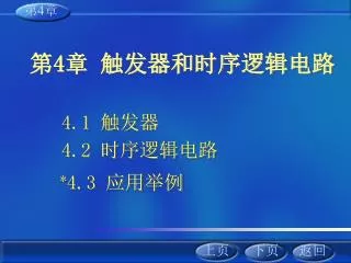 第4章 第4章 触发器和时序逻辑电路 4.1 触发器 4.2 时序逻辑电路 *4.3 应用举例 上页 下页 返回