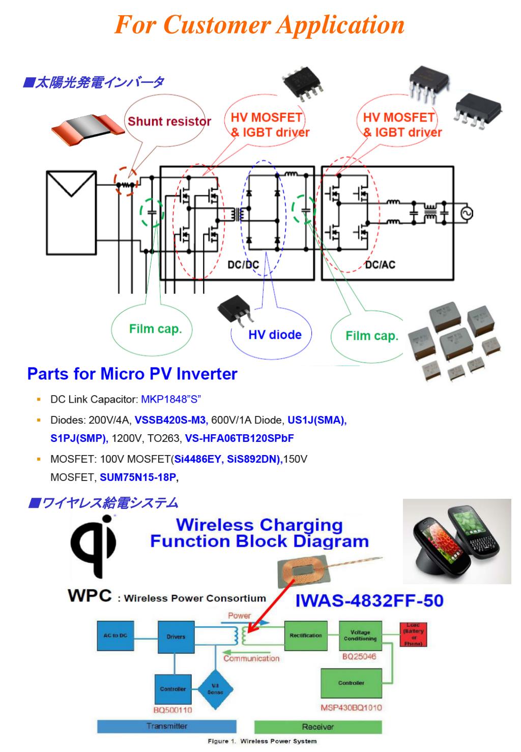 For Customer Application ■太陽光発電インバータ ■ワイヤレス給電システム