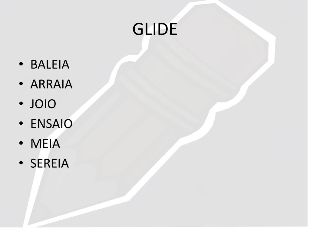 GLIDE • BALEIA • ARRAIA • JOIO • ENSAIO • MEIA • SEREIA