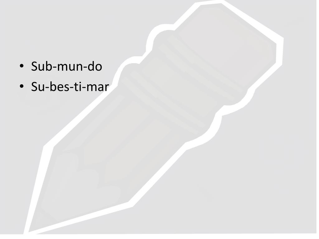 Prefixos terminados em consoante: • Ligados a palavras iniciadas por vogal: A consoante do prefixo ligar-se-á à vogal da palavra. • Ex. Su-ben-ten-di-doTran-sal-pi-noHi-pe-ra-mi-goSu-bal-ter-no