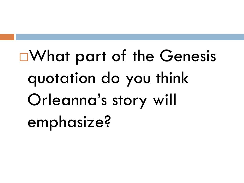 What part of the Genesis quotation do you think Orleanna’s story will emphasize?