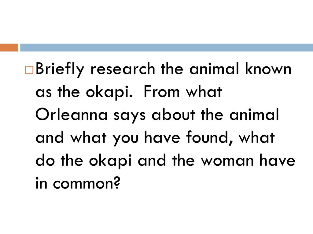 Briefly research the animal known as the okapi. From what Orleanna says about the animal and what you have found, what do the okapi and the woman have in common?