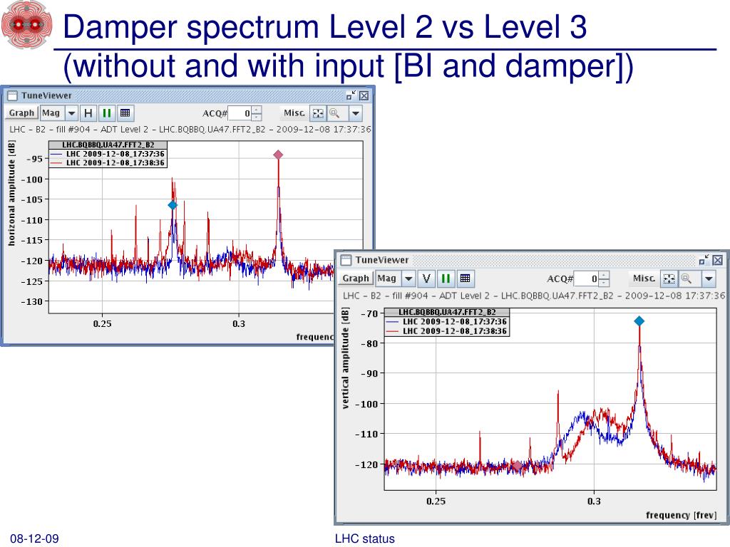 Damper spectrum Level 2 vs Level 3(without and with input [BI and damper]) LHC status