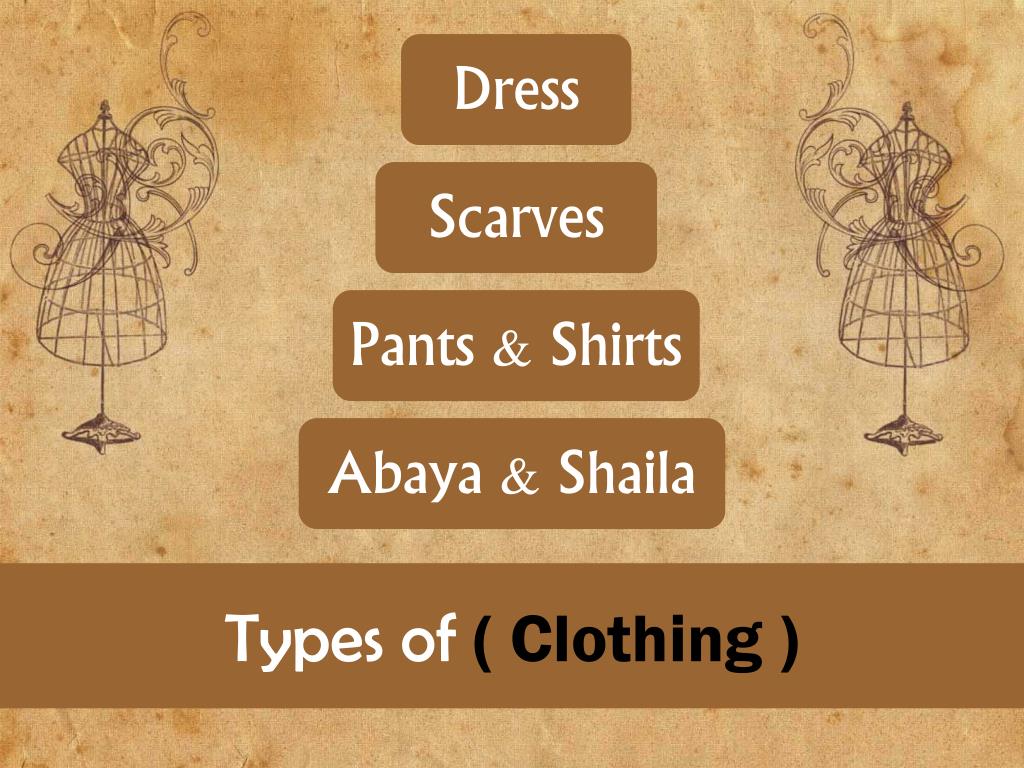 Dress Scarves Pants & Shirts Abaya & Shaila Types of ( Clothing )
