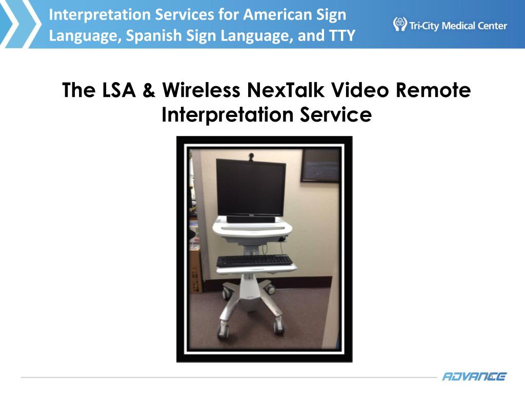 Interpretation Services for American Sign Language, Spanish Sign Language, and TTY • The LSA & Wireless NexTalk Video Remote Interpretation Service