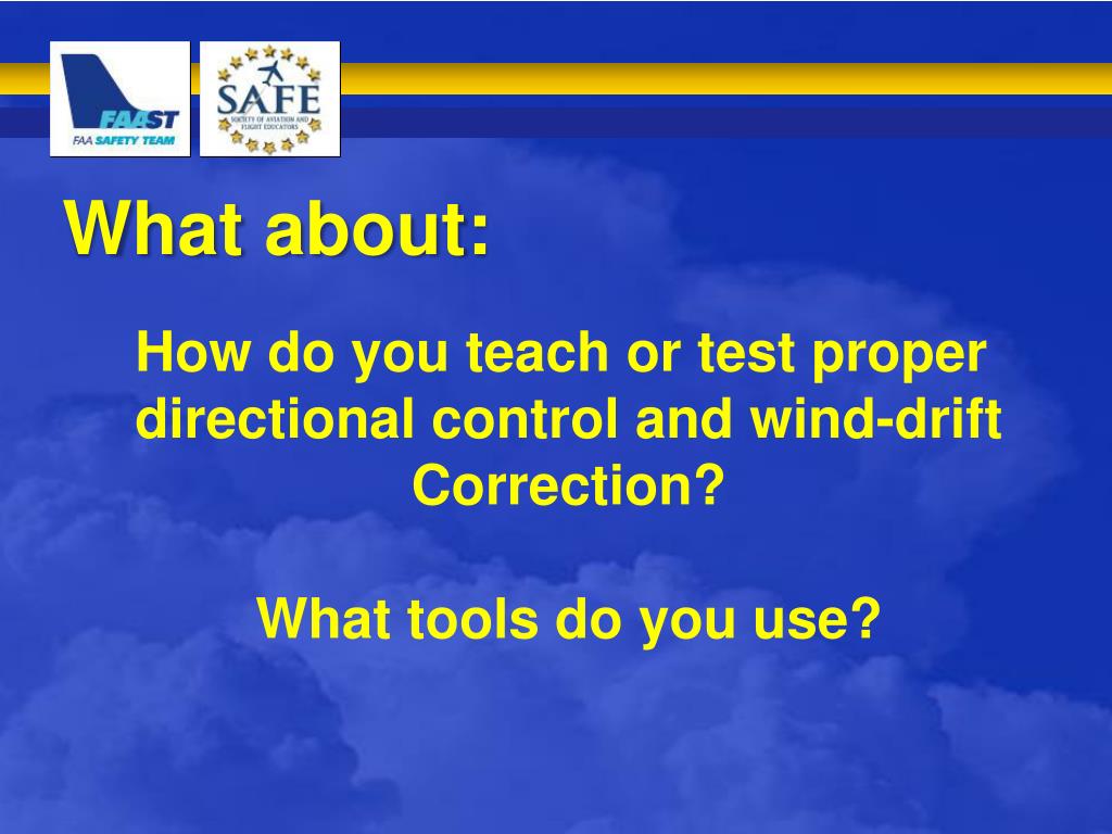 What about: How do you teach or test proper directional control and wind-drift Correction? What tools do you use?